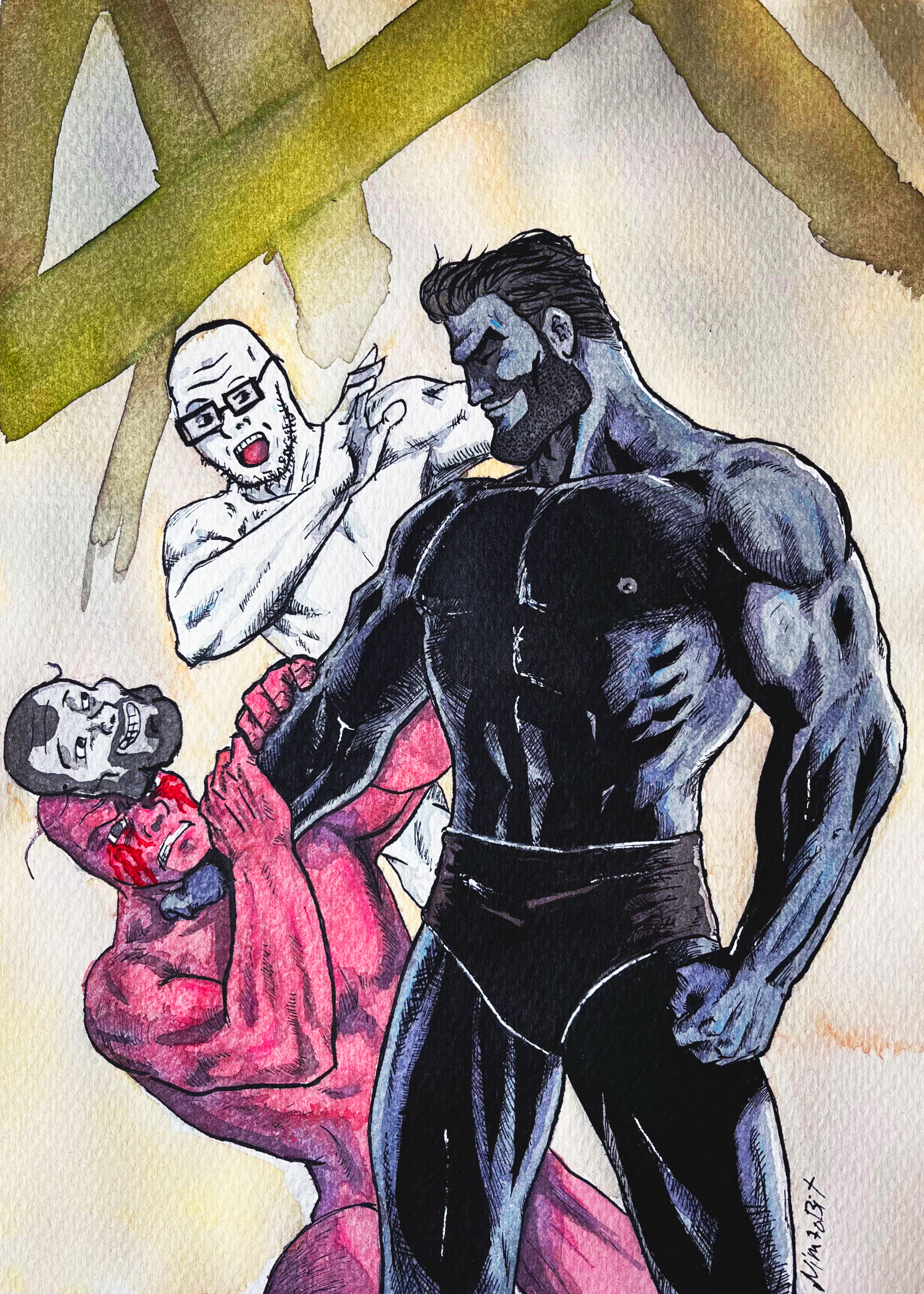 ipfs://bafkreicxzejhsdm4ygtewlq4r42quaatmj6glh3pmeac54wjhibesw5j6u http://tokenscan.io/asset/ONLYONECHAD https://vmsndldautxv7dvxtwc5oj3ek624pah2bu37dky3frhiot76dxjq.arweave.net/qyTRrGCk71-Ot52F1ydkV7XHgPoNN_GrGyxOh0_-HdM Tweet "Wojaks cannot be chads." DINA4 Ink & Watercolour drawing.